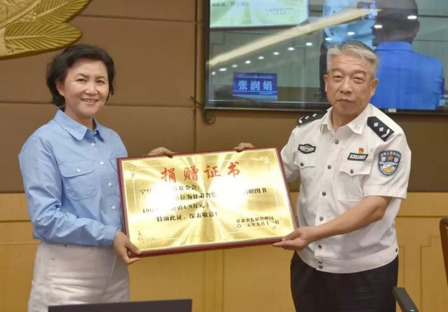 最后,寧夏和諧傳統(tǒng)文化交流中心、寧夏興泰公益基金會(huì)向甘肅省監(jiān)獄管理局捐贈(zèng)圖書1000冊(cè),省監(jiān)獄管理局向?qū)幭呐d泰公益基金會(huì)頒發(fā)捐贈(zèng)證書。