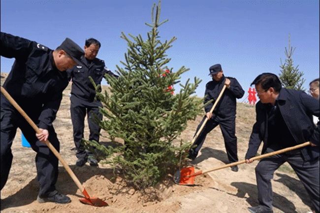 上午9時許,省司法廳機關(guān)、省監(jiān)獄管理局機關(guān)、省戒毒管理局機關(guān)黨員干部及省律師協(xié)會律師代表共240余人,在位于蘭州新區(qū)“司法行政法治林”的植樹點迅速集結(jié)。大家熱情高漲、干勁十足,分工協(xié)作、默契配合,嚴格按照“三埋兩踩一提苗”的標準進行植樹。有的揮鍬鏟土,有的扶苗填坑,有的培土圍堰,有的提桶澆水,到處都是忙碌的身影。經(jīng)過一上午的辛勤勞作,共栽種各類苗木600余株。新栽的苗木昂然挺立,在春風中展現(xiàn)出勃勃生機,為春天的隴原大地增添了一抹靚麗的新綠。此次活動不僅增強了全系統(tǒng)干部職工的生態(tài)文明意識,也生動展現(xiàn)了司法行政隊伍吃苦耐勞、甘于奉獻的良好精神風貌。