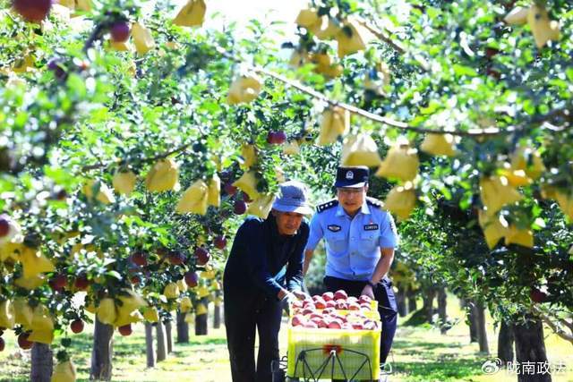 “我家今年種植了5畝蘋果,兩個娃娃都在外面工作,現(xiàn)在蘋果紅了,也預(yù)定出去了,我們勞動力少,請臨時務(wù)工人員又劃不來,蘋果摘不下來,也搬不到地頭上,看著別人都摘著賣蘋果,我們老兩口愁得整晚睡不著覺,幸虧有你們派出所民警幫助我們……”9月20日中午,巡邏民警田想生和同事在巡邏中了解到趙家村老人趙九娃的情況后,擼起袖子幫忙采摘、分揀、裝箱、搬運??粗幌湎涮O果整齊裝車,老人緊鎖的眉頭終于舒展開來。采摘期間,祁山派出所堅持“民生無小事”,將便民服務(wù)延伸至田間地頭,開通“便民通道”,集中幫果農(nóng)采摘蘋果、為農(nóng)戶辦理身份證補辦、戶籍咨詢、農(nóng)機具登記等業(yè)務(wù),讓服務(wù)跟著百姓需要走,切實解決群眾困難。