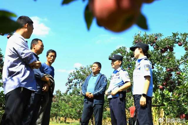 “感謝警察同志的耐心調(diào)解?!薄班l(xiāng)里鄉(xiāng)親之間,一定要和諧相處。俗話說,遠親不如近鄰,有問題要及時溝通?!?月22日下午,趙家果園的果農(nóng)趙某甲因招攬的務(wù)工人在不知情的情況下誤采摘了趙某乙種植的蘋果,導致兩位果農(nóng)發(fā)生了口角,正在附近巡邏的派出所民警聞訊后第一時間趕往現(xiàn)場,對當事人雙方進行耐心地勸導,十分鐘后該起矛盾便得到化解。雙方握手言和,笑容重新回到臉上。