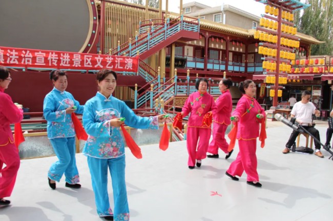 “十四五”期間,酒泉市敦煌市的法治宣傳煥發(fā)出全新活力。當(dāng)古老的飛天壁畫與現(xiàn)代法治精神相遇,當(dāng)嚴(yán)謹(jǐn)?shù)姆蓷l文化為市集街巷的親切鄉(xiāng)音,法治的種子便在人們心中悄然生長(zhǎng)。敦煌市打破傳統(tǒng)模式,用群眾喜聞樂見的方式講述法治故事,讓普法宣傳既有創(chuàng)意又接地氣,在全市構(gòu)建起一個(gè)全社會(huì)共同參與的法治宣傳教育新格局。